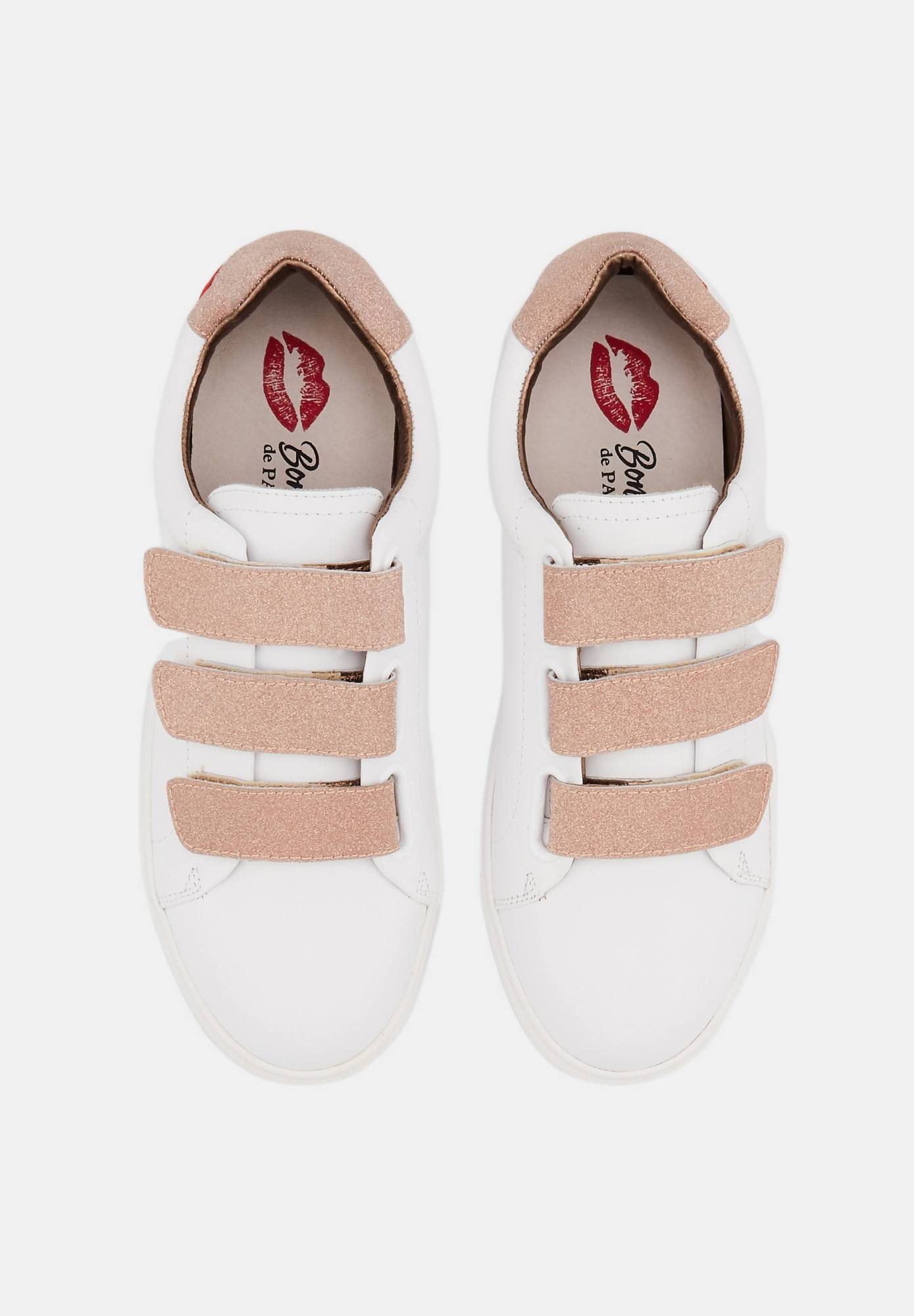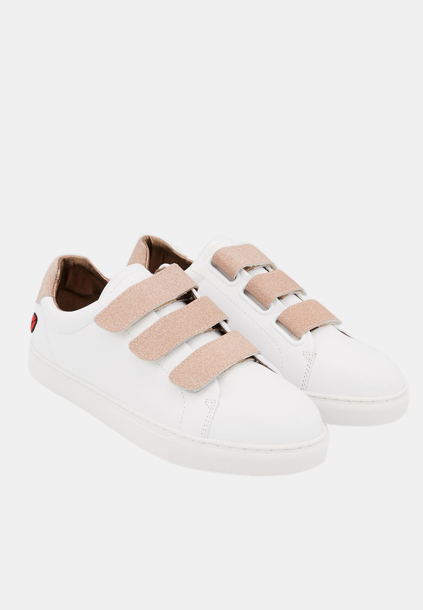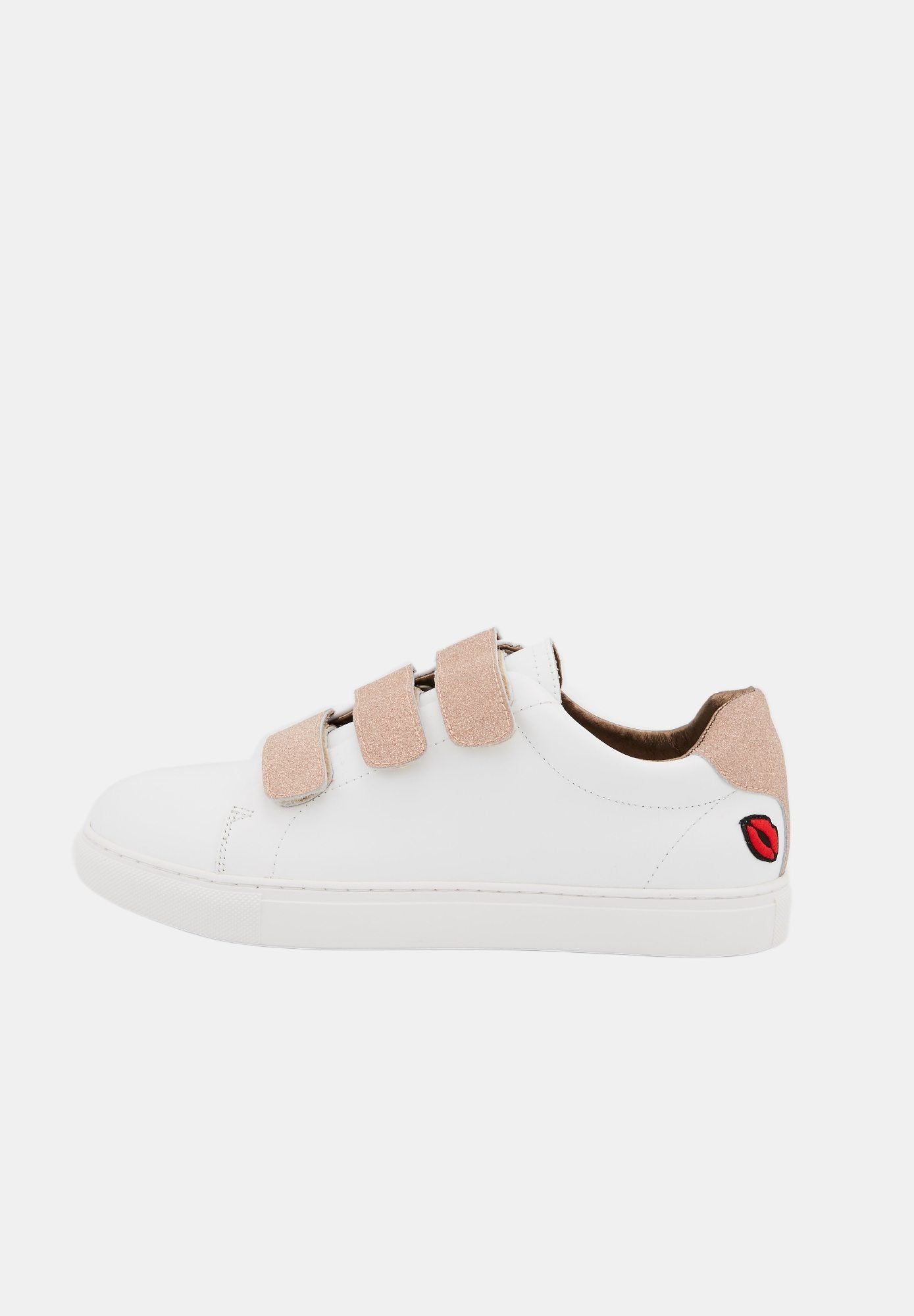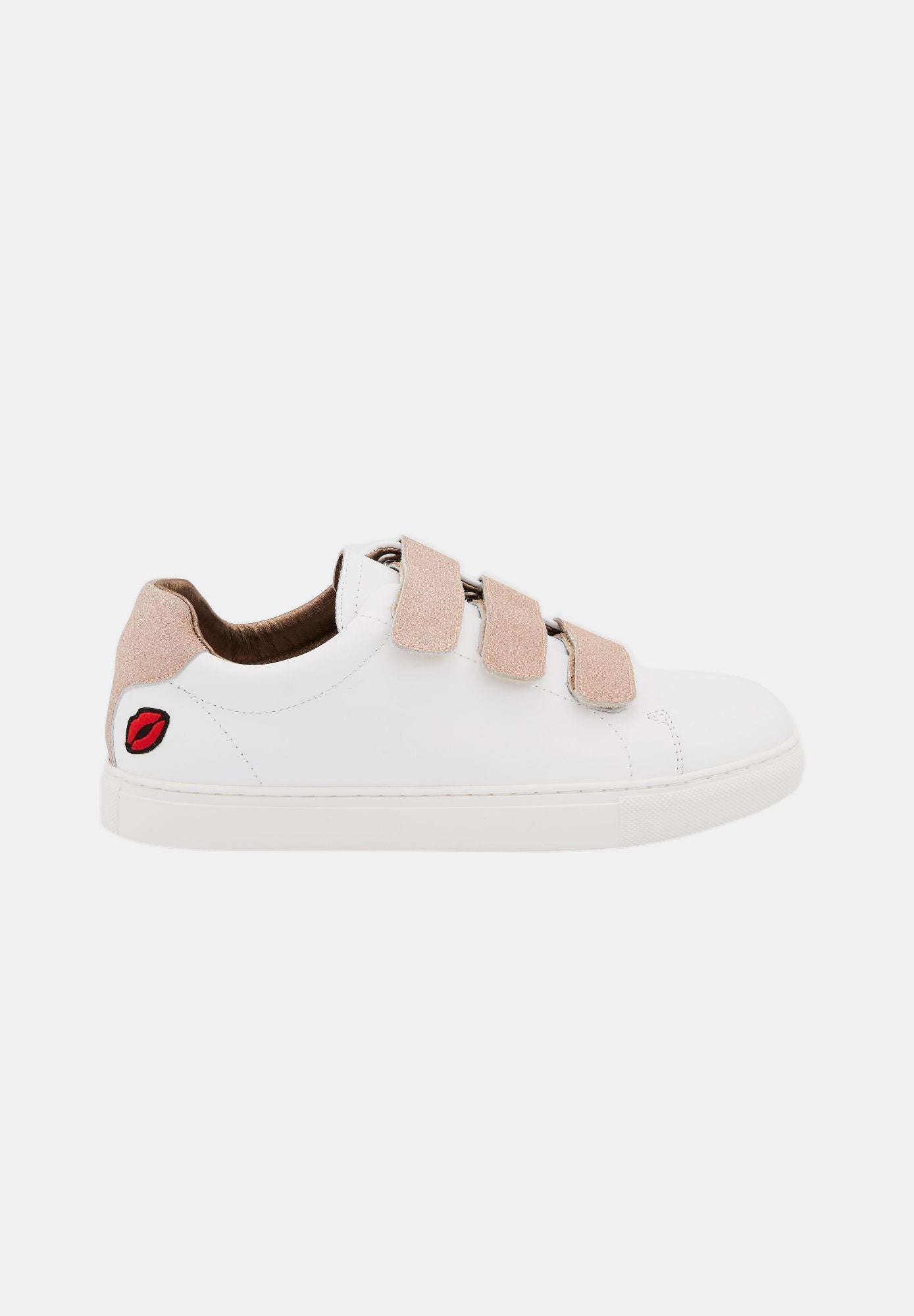 Edith - White/Glitter Gold Baskets en cuir blanc