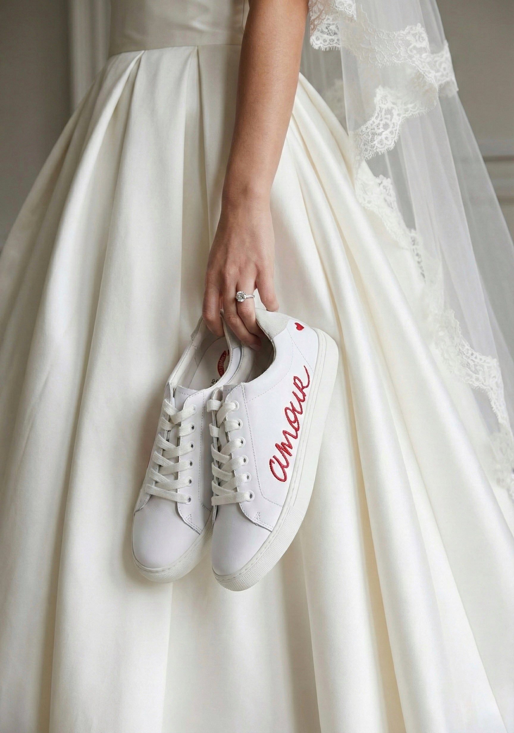 Simone Amour - White/Red Baskets en cuir blanc