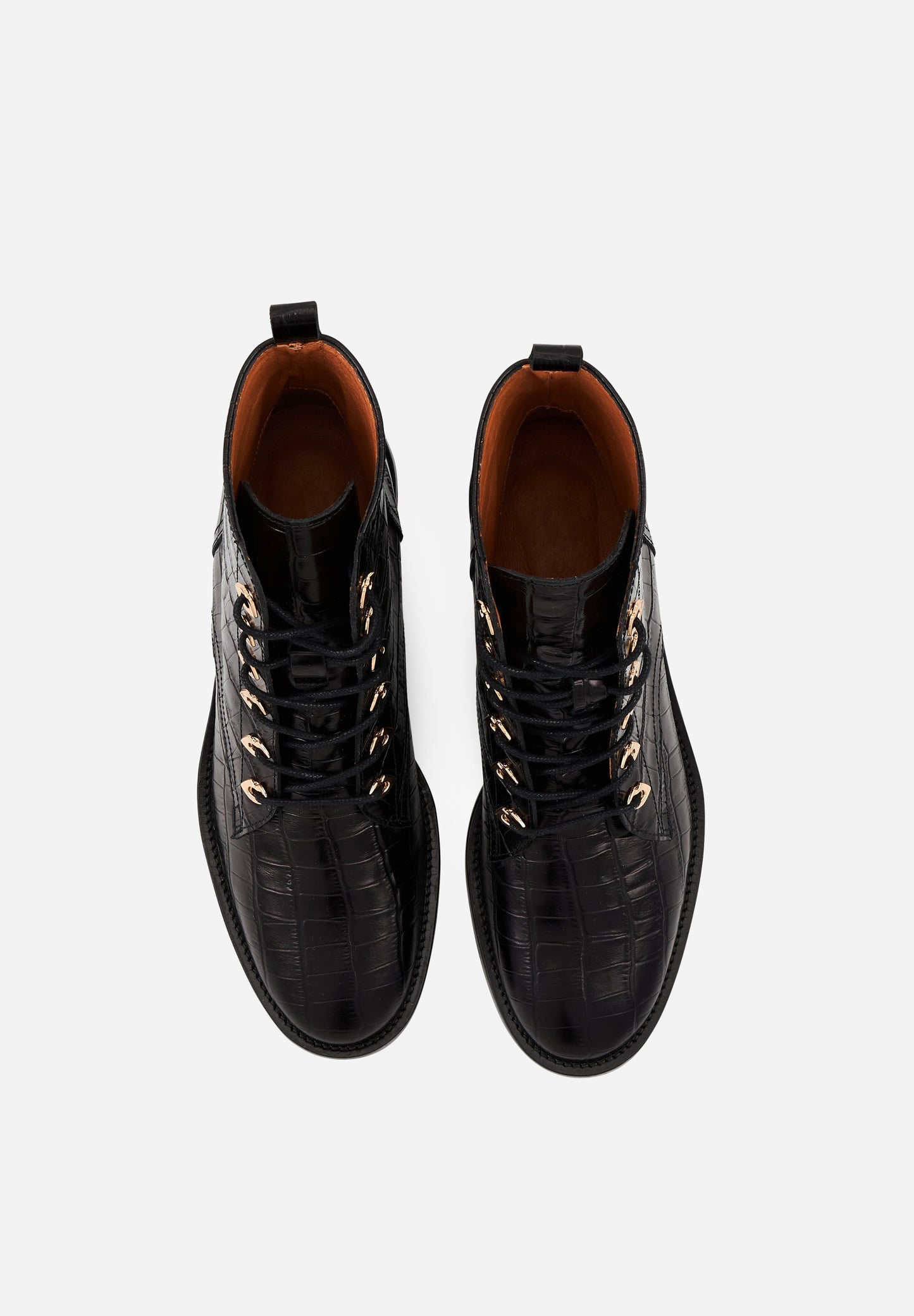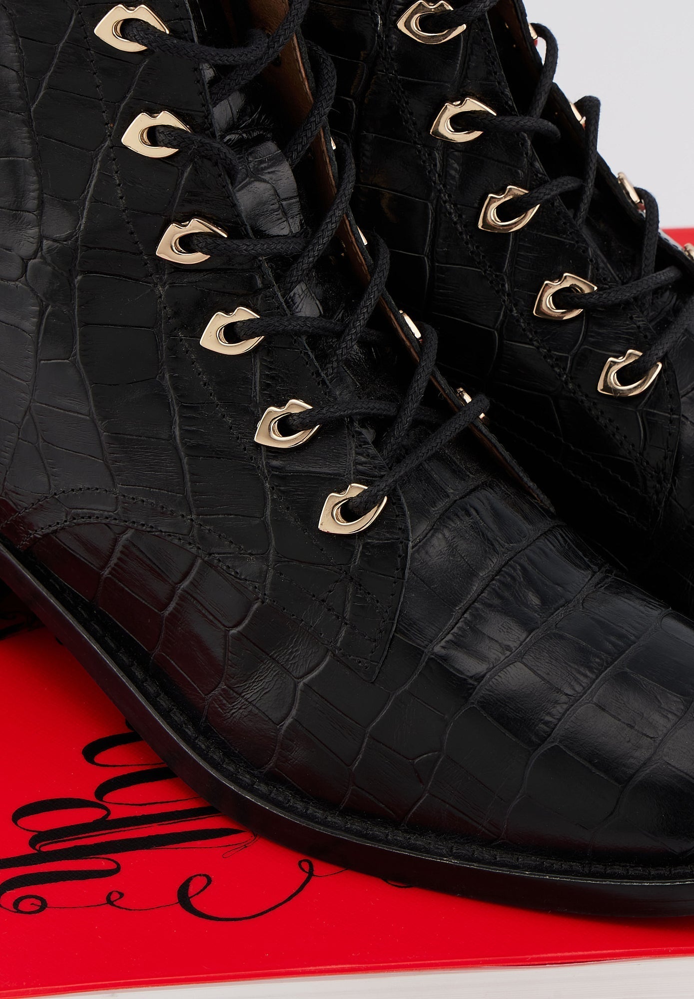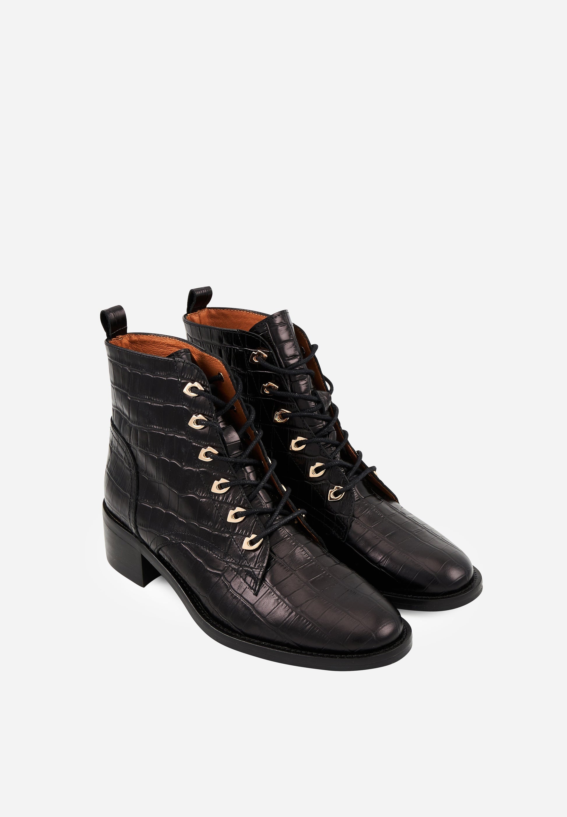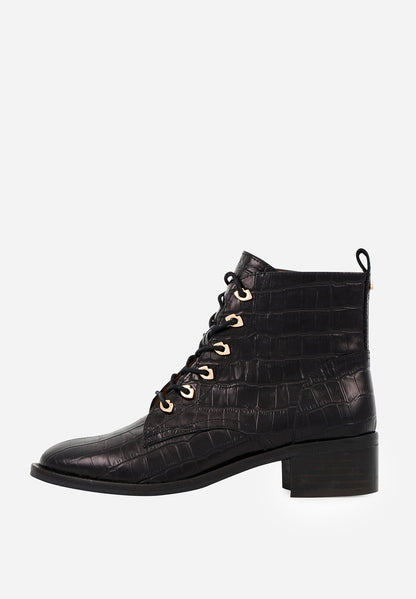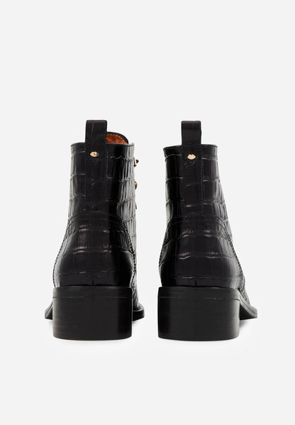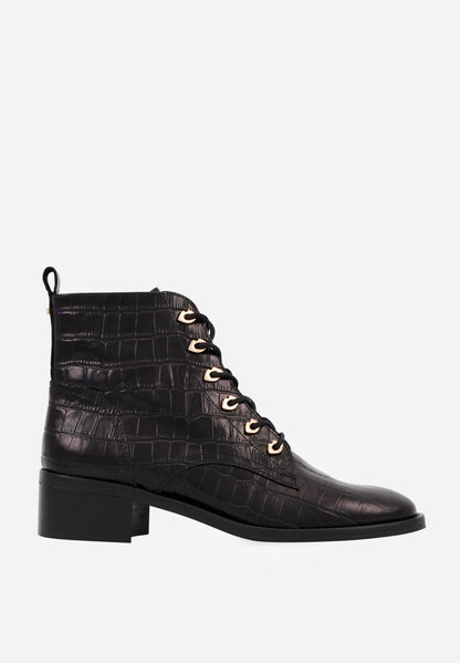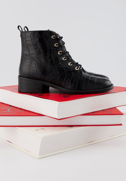 Bottines à lacets - Cuir Croco Noir - Paulette